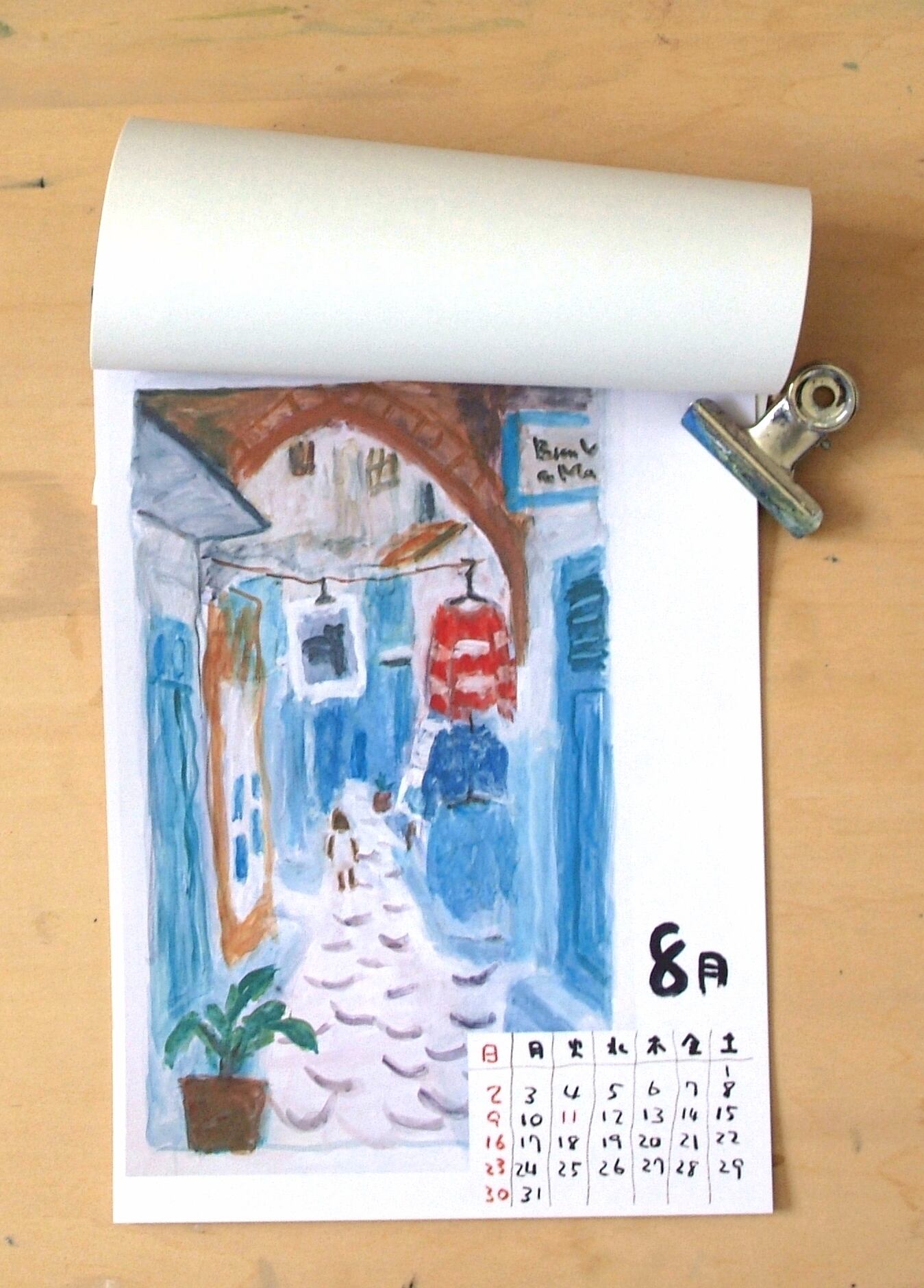 今年描いた水彩画の中から12枚を選んで作った手作りカレンダーです。大分前に写生旅行したモロッコを題材に再び描いてみました。大きさはA5サイズで、表紙を含めて13枚です。お部屋に飾って頂ければ幸いです。(ホームページにも載せましたので参考までに。https://etojiyu.com/blog/2026-calendar/ )