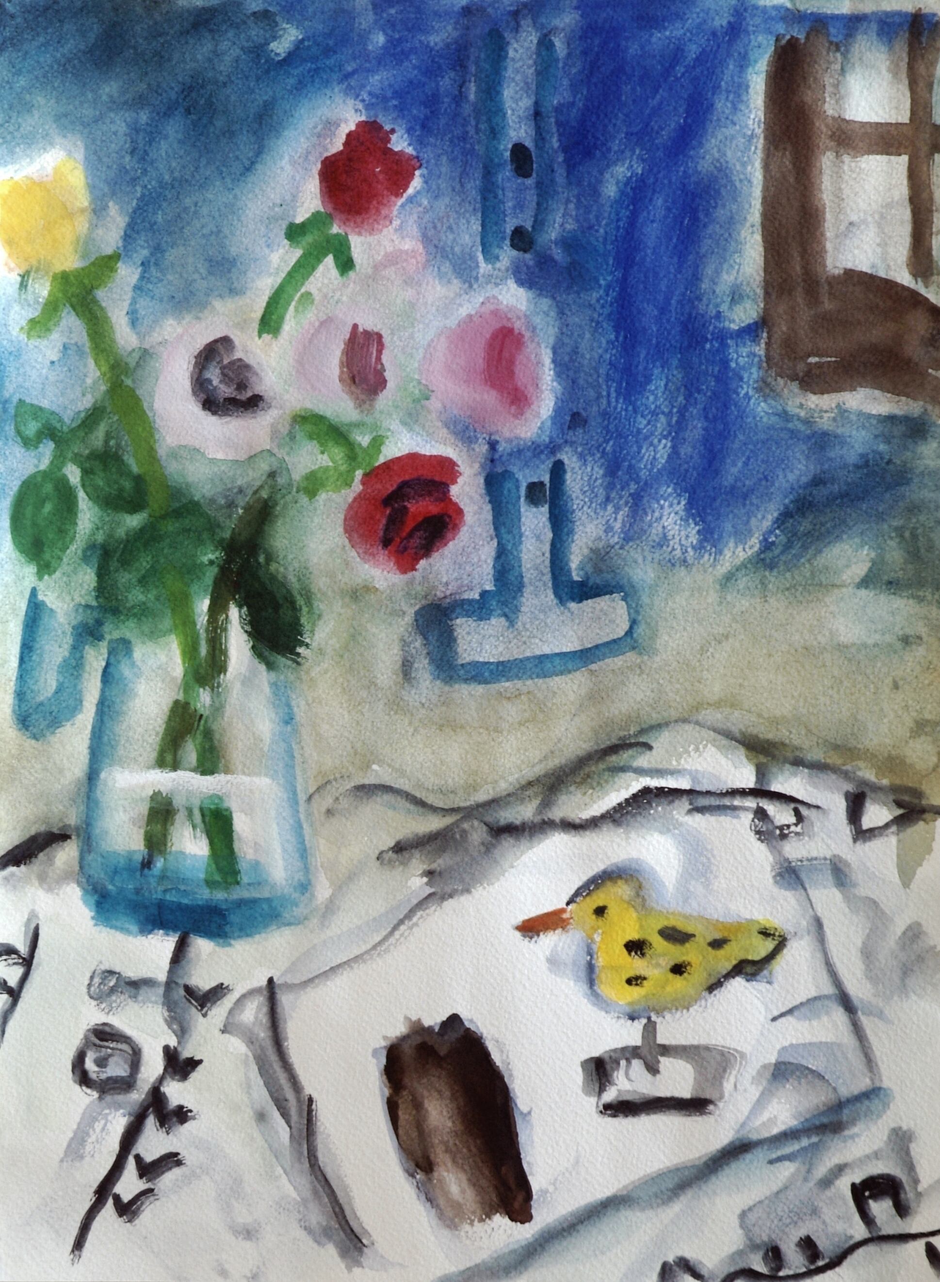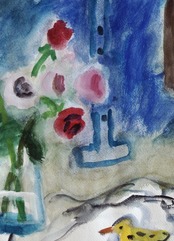 久しぶりに描くバラの花。相変わらず悪戦苦闘・・・。いつもながら全体の色の共鳴に腐心しました。